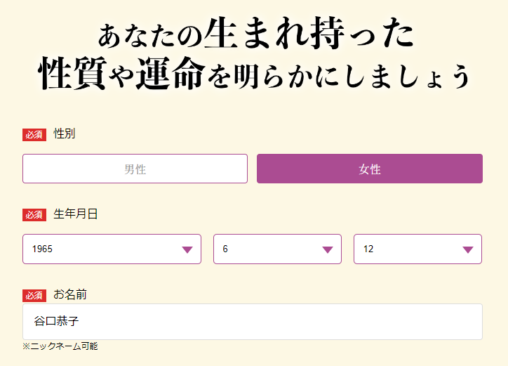 生年月日・性別・名前を送るだけです!