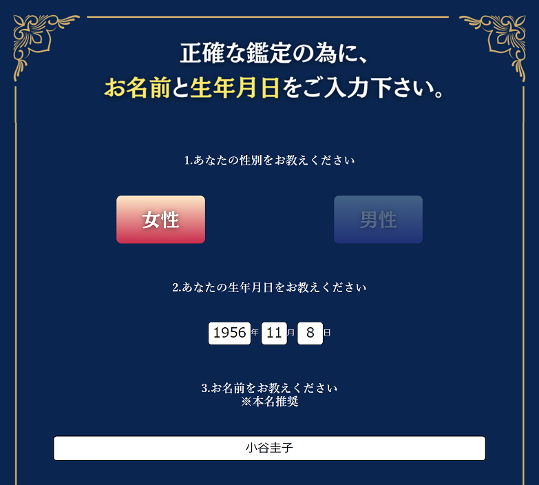 性別・生年月日・名前を送るだけです!